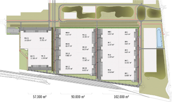 worden ingezet. De gebouwen zijn in units te huur vanaf 8.000 m².